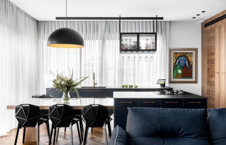 מדובר בשיפוץ כולל של פנטהאוז של כ-110 מ"ר, עם נוף אורבני ברמת גן. בדירה מתגורר גבר גרוש בשנות ה-50 לחייו עם ילדים בוגרים, שאוהב לארח ואוהב לבשל. כמה מילים על