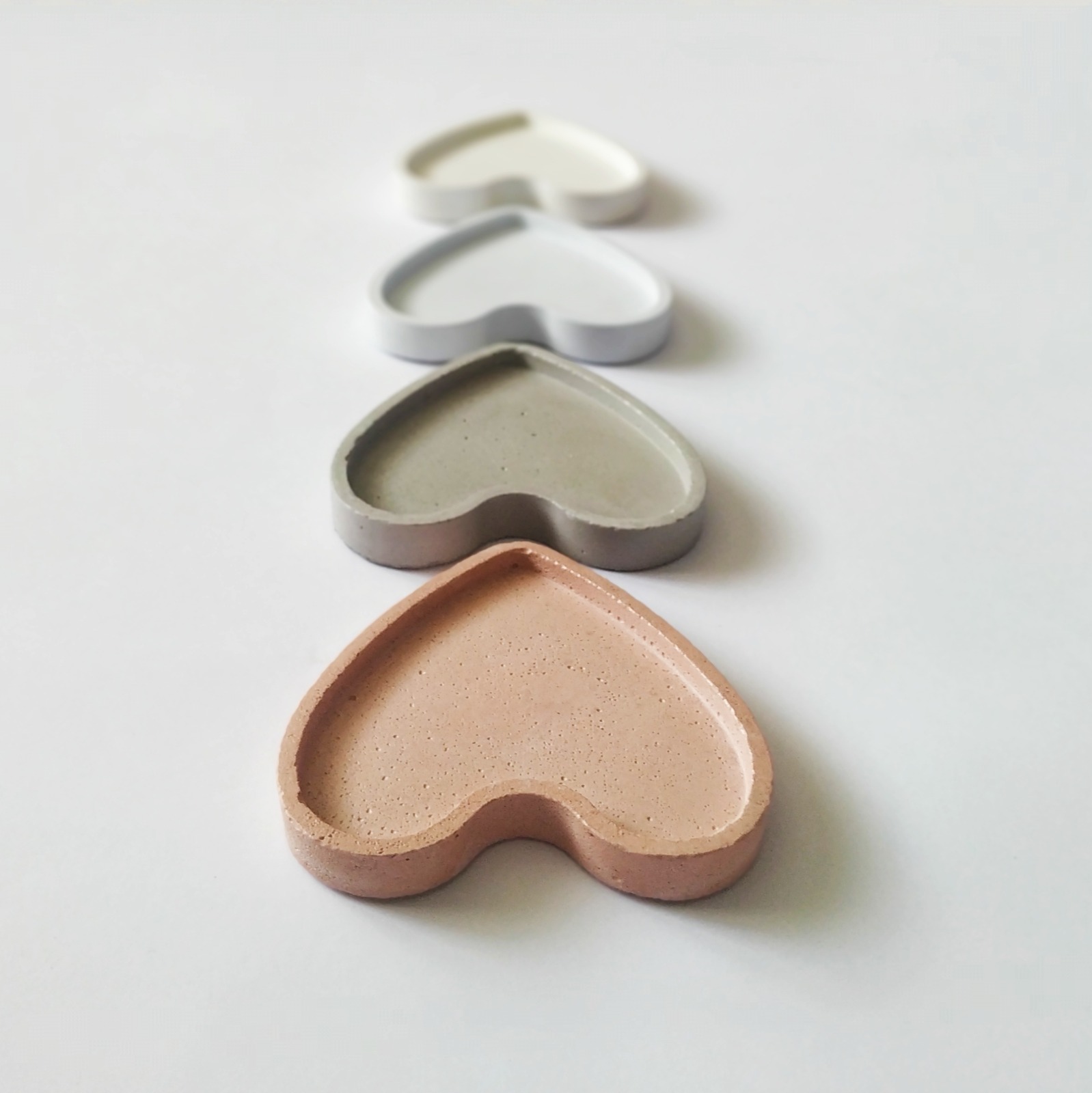 "לב בצבע טרקוטה מסמל את האדמה, לב בטון בצבע תכלת מסמל את השמיים והים, לב בטון בצבע אפור מסמל את היסודות שאנו בונים במהלך חיינו, לב בטון בצבע לבן מסמל את הטוהר של הלב. ארבעת היסודות האלו בונים אותנו בכל מהלך חיינו והופכים אותנו למי שאנחנו היום. כל מתנה שיש בה משמעות עבור נותן ומקבל המתנה היא מושלמת בעיני כמו המגשים שלי עם הקווים הפשוטים והנקיים של הלב, ללא יומרות או תחכום מיוחד."