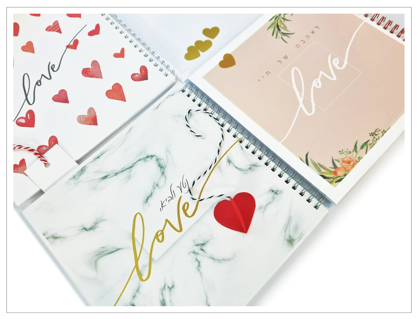 "לבבות זה אני, בכל הצבעים ומכל הסוגים. אני משחקת עם הלבבות בתלת ממד, ומציירת אותם על המחברות. לבבות הם מתנה מושלמת. בעיניי מתנה מושלמת חייבת להיות מותאמת למי שמקבל אותה. שתהיה הכי אישית. כמובן שאריזה מהממת ומפתיעה תמיד משדרגת את החוויה בגלל זה במוצרים שלי אפשר בתהליך ההזמנה להוסיף שם והקדשה. כך המחברת הופכת למתנה שהיא ממש מכל הלב."