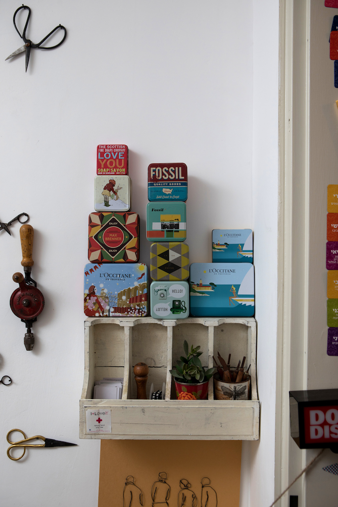 ת': הקיר עם אוסף המספריים שלי. עיצבתי אותו מיד כשנכנסתי לדירה.