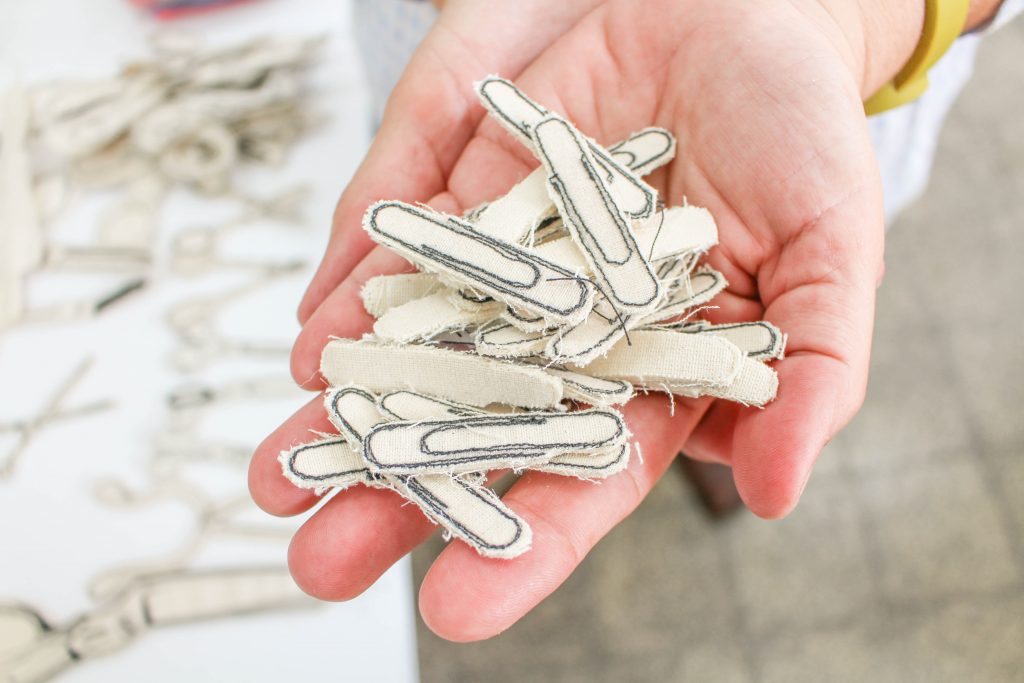 כלי כתיבה מבד: "תגובות נלהבות של אנשים שביקרו בסטודיו עזרו לי להבין שהמוצרים הפיזיים – כלי הכתיבה התפורים עבודת יד מרגשים לא פחות מהטפטים עליהם הם מודפסים. החלטתי להתחיל לייצר ולמכור אותם כמוצר בפני עצמו. חקרתי וניסיתי ומצאתי פתרון. מעורבות בו עוד ידיים אבל סוף סוף יש מוצרים מוכנים. חוץ מתפירה של אלמנטים מעולם הכתיבה יש לי גם עיצובים של פרחי בד ועצים דמיוניים דמויי ברושים וכרגע אני תופרת גם איורי כסאות ואיורי ספלים."